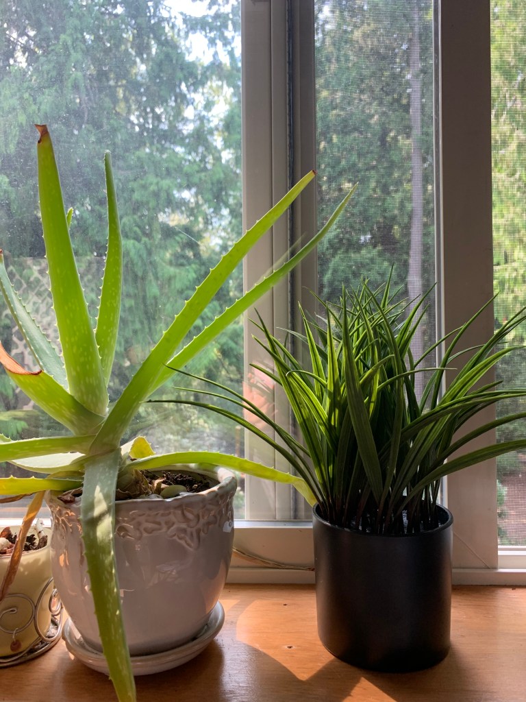 (The inference/insight would be correct…the aloe plant is real but the one next to it is not.)