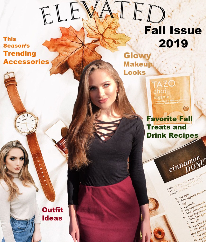 This is my revised magazine cover. I decided to name my magazine “Elevated” because I decided to call my brand “Elevated by El”. It is a fashion, interior design, and lifestyle magazine that encourages everyday women to be the best versions of themselves. It includes ideas when it comes to favorite recipe finds (hopefully these will mostly be healthy, but I had to include one I found for donuts…sometimes you just have to treat yourself), fitness, style, beauty products, activities, career advise, home decor and organization, and more. I’ve always wanted to start a youtube channel discussing these things, so this magazine cover was a fun way to express my interests.